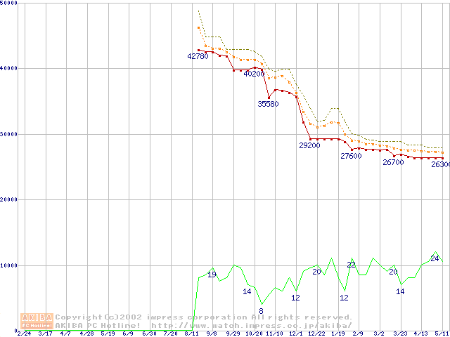 Pentium III-S 1.26GHz FC-PGA2 リテールパッケージの価格推移