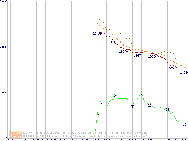 DiamondMax Plus D740X (7200rpm,UltraATA/133,40GB/Platter)の最安値推移