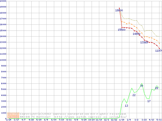 DiamondMax Plus D740X (7200rpm,UltraATA/133,40GB/Platter,流体軸受)の最安値推移