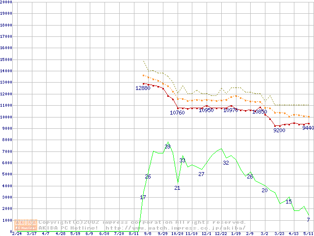 Celeron 1.10GHz FC-PGA リテールパッケージの価格推移