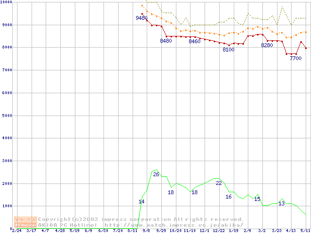 Celeron 950MHz FC-PGA リテールパッケージの価格推移