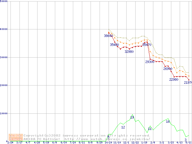 Athlon MP 1800+ (1.53GHz) バルクの価格推移