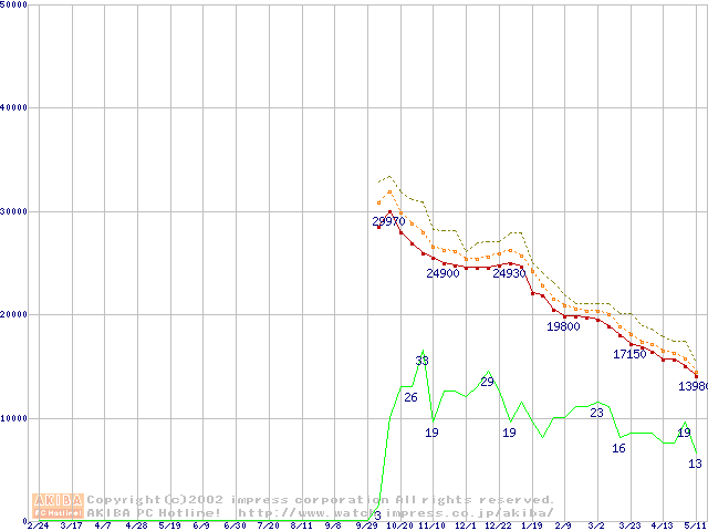 Socket A (Palomino,OPGA,FSB 266MHz,L2 256KB)の最安値推移