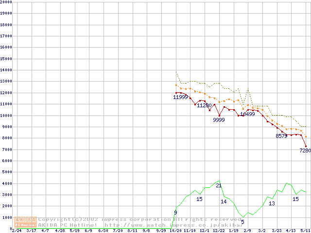 Duron 1.1GHz リテールパッケージの価格推移