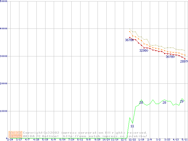 DiamondMax D540X (5400rpm,UltraATA/133,40GB/Platter)の最安値推移