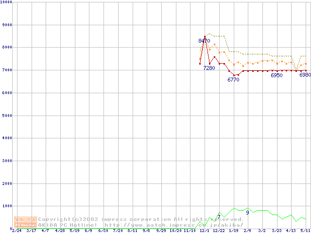 Socket 370 (PGA,FSB 133MHz,L2 64KB)の最安値推移