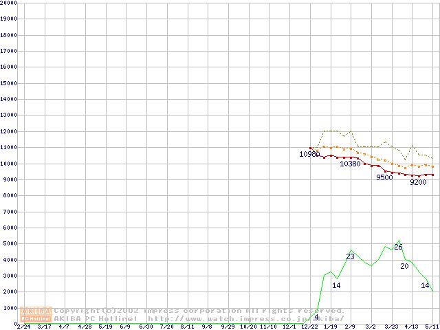DiamondMax D540X (5400rpm,UltraATA/100,40GB/Platter,流体軸受)の最安値推移