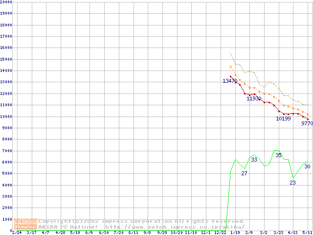 Deskstar 120GXP (7200rpm,UltraATA/100 2MB)の最安値推移