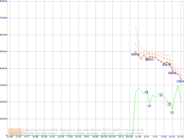 Pentium 4 2A GHz リテールパッケージの価格推移