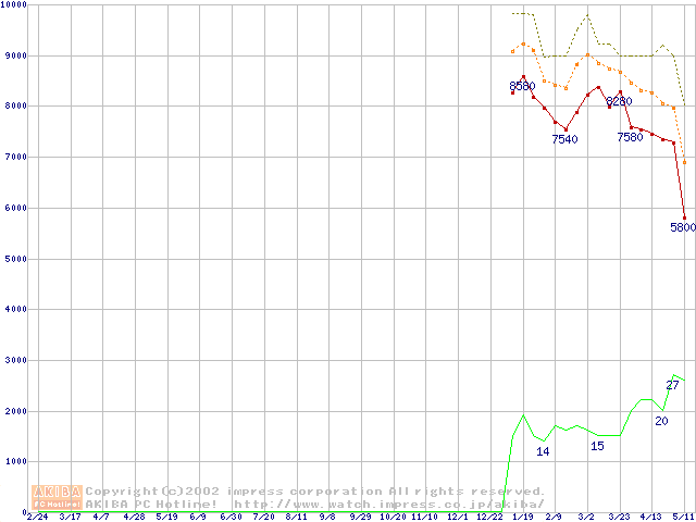 メモリ主要製品(最安値5千円~1万円未満)の最安値推移