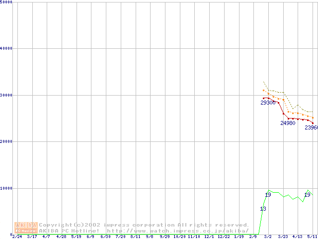 Athlon MP 1800+ (1.53GHz) リテールパッケージの価格推移