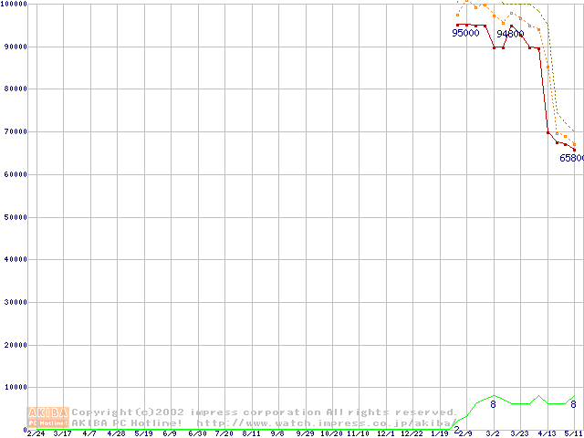 Socket 603 (micro-PGA,L2 512KB,Hyper-Threading,Prestonia)の最安値推移