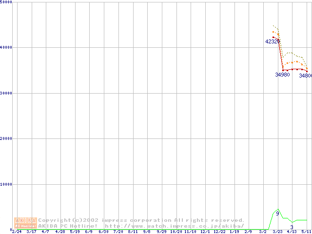 Socket A (Palomino,OPGA,FSB 266MHz,L2 256KB)の最安値推移
