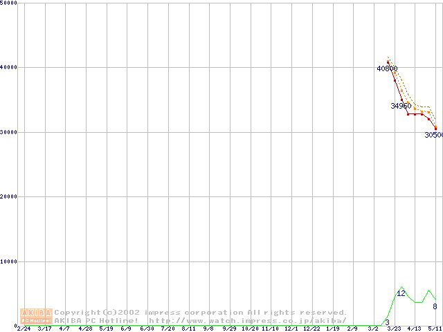 Socket A (Palomino,OPGA,FSB 266MHz,L2 256KB)の最安値推移