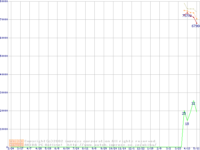 Socket 478 (micro-PGA,FSB 400MHz,L2 512KB,Northwood)の最安値推移