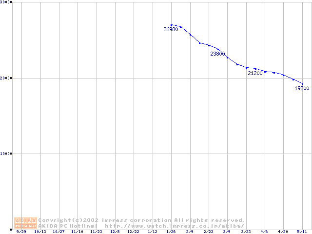 | [↑前グラフ]: | Travelstar 15GN (9.5mm,4200rpm,UltraATA/100,512KB,流体軸受)の最安値推移 |