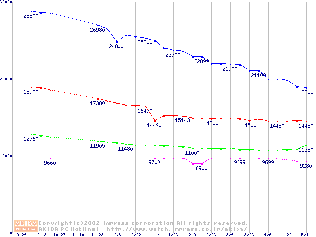 | [↑前グラフ]: | MKシリーズ (9.5mm,4200rpm,流体軸受け)の最安値推移 |