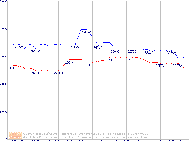 | [↑前グラフ]: | Socket 603 (micro-PGA,L2 512KB,Hyper-Threading,Prestonia)の最安値推移 |