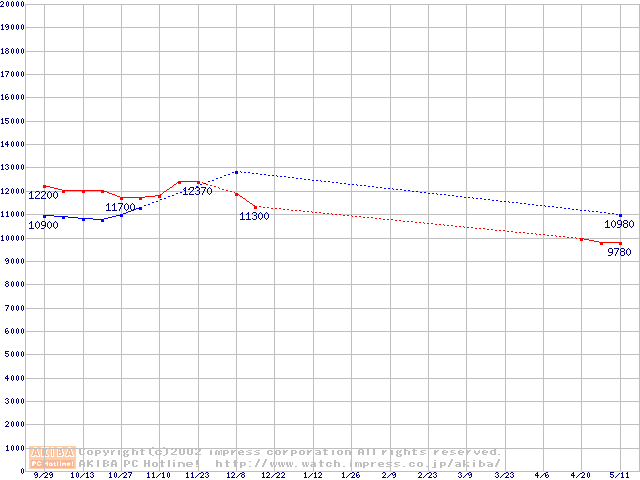 | [↑前グラフ]: | Barracuda ATA IV (7200rpm,UltraATA/100 2MB 40GB/Platter,流体軸受)の最安値推移 |