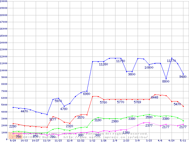 | [↓次グラフ]: | PC133 SDRAM DIMM CasLatency=2の最安値推移 |