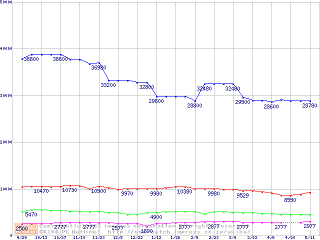 | [↓次グラフ]: | PC800-40 DRDRAM RIMMの最安値推移 |