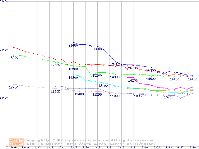 | [↓次グラフ]: | 2.5インチHDD主要製品(最安値1万5千円~2万円未満)の最安値推移 |