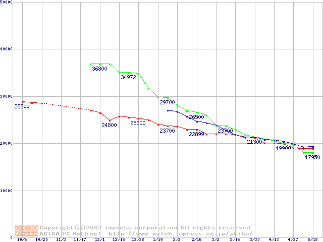 | [↓次グラフ]: | 2.5インチHDD主要製品(最安値2万円~3万円未満)の最安値推移 |
