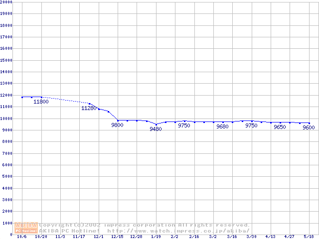 | [↓次グラフ]: | 2.5インチHDD 10GB~20GB未満(9.5mm厚)の最安値推移 |