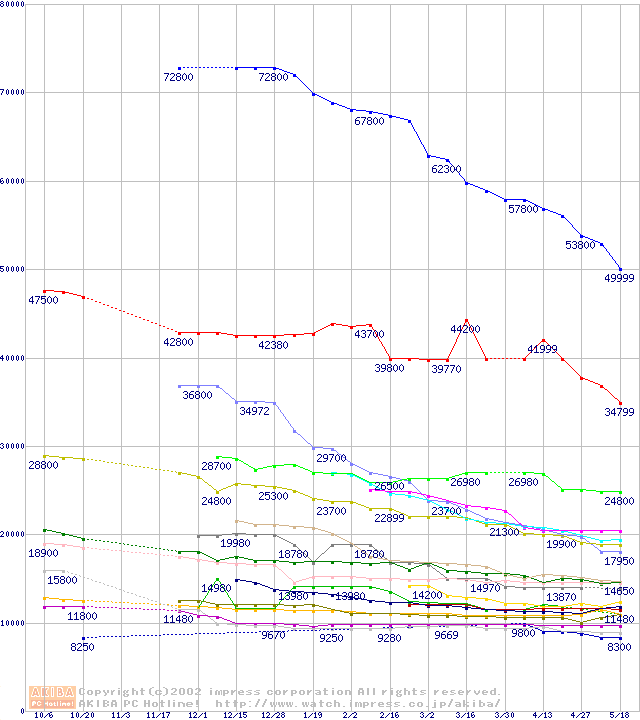 CPU主要製品の最安値推移