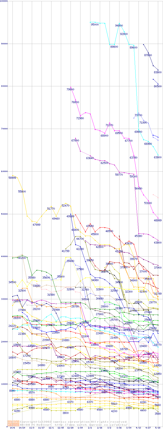 CPU主要製品の最安値推移