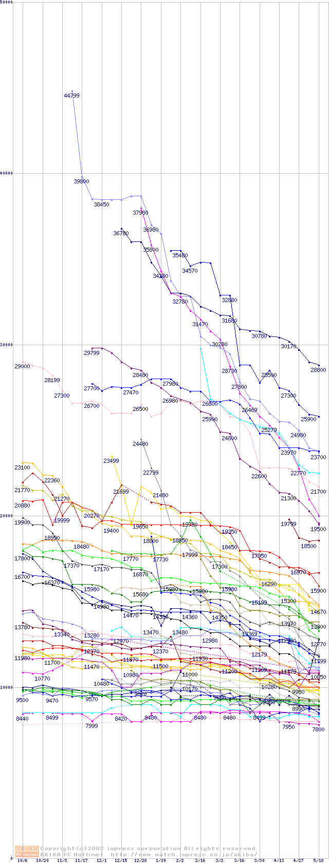 HDD 10GB~20GB未満(5400rpmクラス)の最安値推移