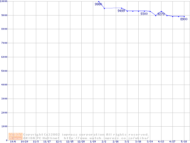 | [↑前グラフ]: | HDD 20GB~30GB未満(5400rpmクラス)の最安値推移 |