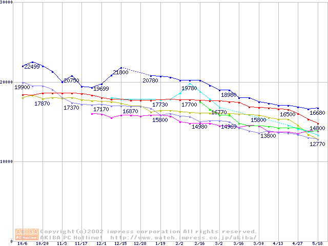 | [↓次グラフ]: | HDD 100GB以上(5400rpmクラス)の最安値推移 |