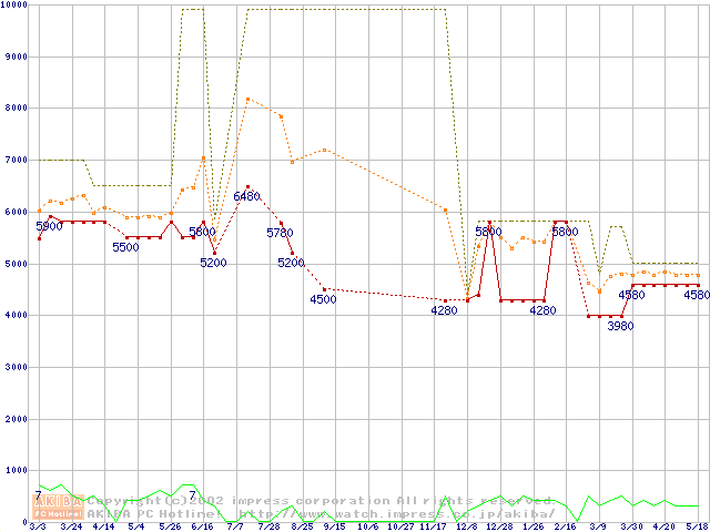 Socket 370・FSB 66MHzの最安値推移