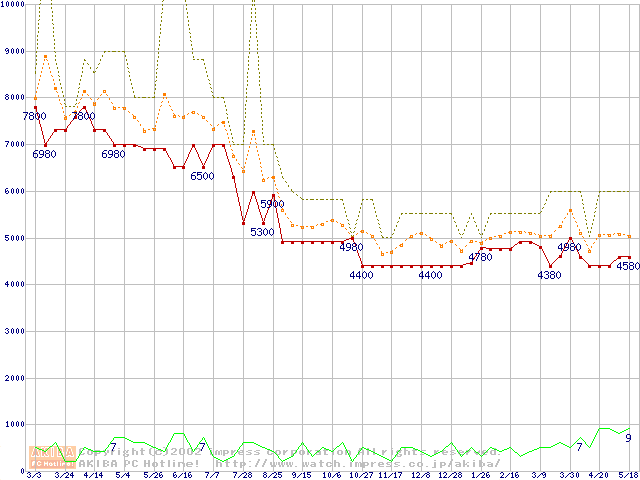 Socket 370・FSB 66MHzの最安値推移