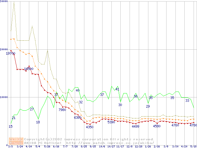 PC800 DRDRAM RIMMの最安値推移