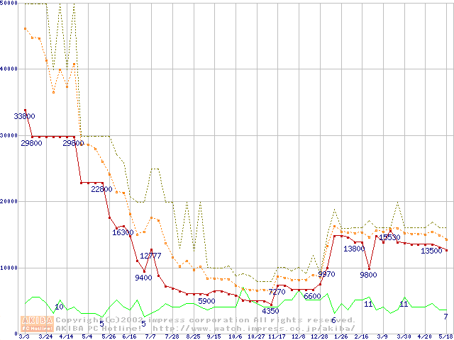 PC100 SDRAM DIMM CasLatency=2の最安値推移