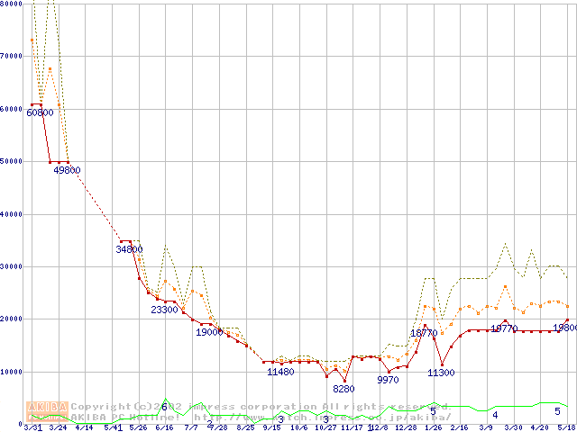 PC100 SDRAM DIMM CasLatency=2 ECC対応の最安値推移