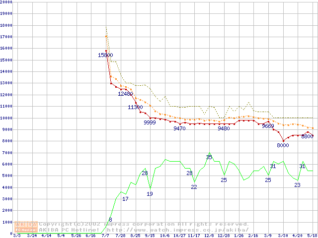 U6 (5400rpm,UltraATA/100 2MB 40GB/Platter)の最安値推移