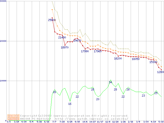 HDD主要製品の最安値推移