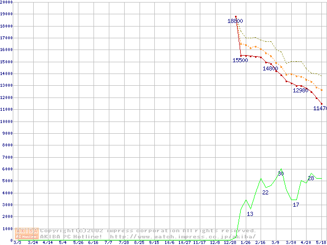 DiamondMax Plus D740X (7200rpm,UltraATA/133,40GB/Platter,流体軸受)の最安値推移