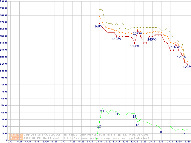 Athlon XP 1500+ (1.33GHz) バルクの価格推移