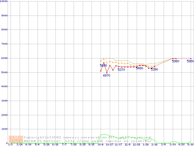 Socket A (Spitfire,PGA,FSB 200MHz,L2 64KB,1.4V)の最安値推移
