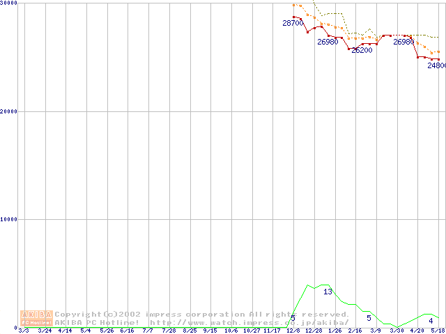 2.5インチHDD主要製品(最安値2万円~3万円未満)の最安値推移