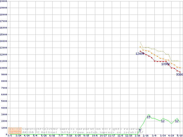 Socket A (Morgan,PGA,FSB 200MHz,L2 64KB)の最安値推移