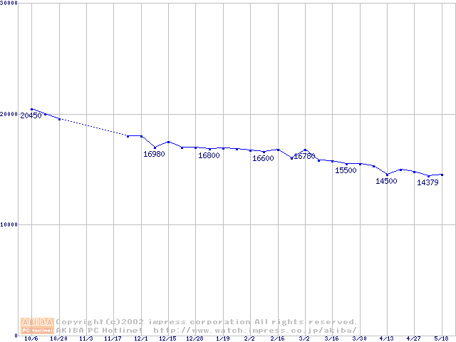 | [↓次グラフ]: | Travelstar 15GN (9.5mm,4200rpm,UltraATA/100,512KB,流体軸受)の最安値推移 |