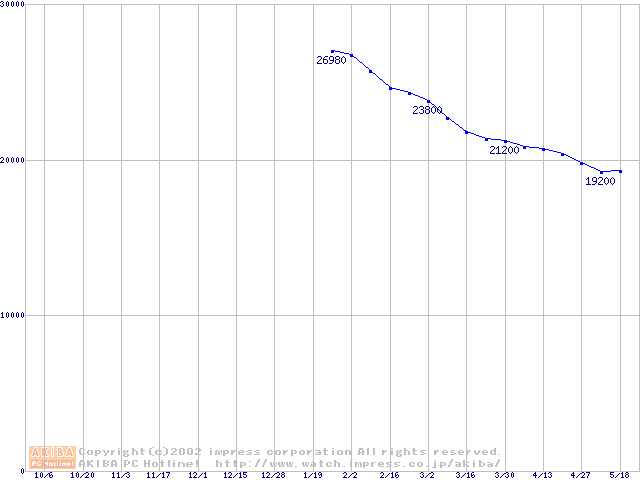 | [↑前グラフ]: | Travelstar 15GN (9.5mm,4200rpm,UltraATA/100,512KB,流体軸受)の最安値推移 |