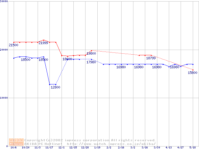 | [↓次グラフ]: | Slot 1 (SECC2,FSB 100MHz,L2 256KB)の最安値推移 |