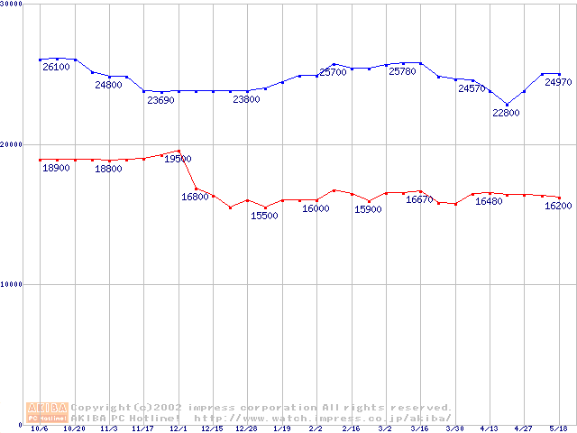| [↑前グラフ]: | Slot 1 (SECC2,FSB 133MHz,L2 256KB)の最安値推移 |