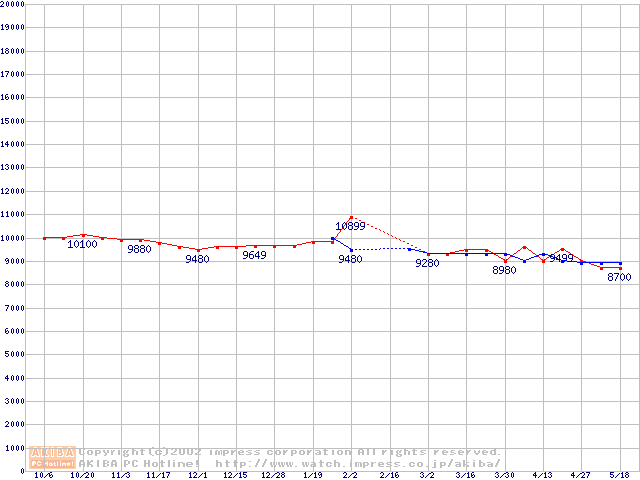 | [↑前グラフ]: | MPG3xxxAH-E (7200rpm,UltraATA/100)の最安値推移 |